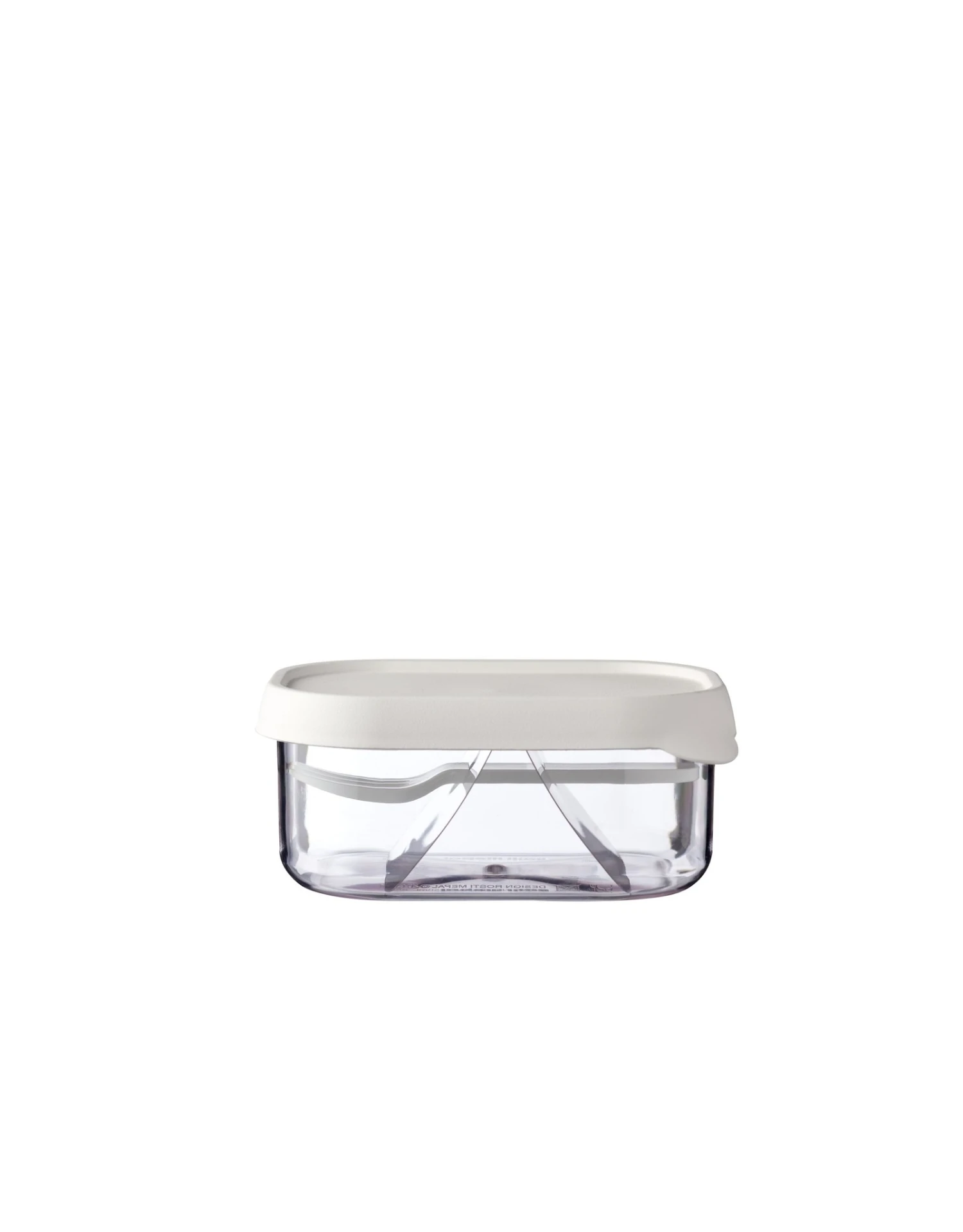 Fruitbox Take a Break in de kleur wit. Met deze fruitbox van Mepal wordt het meenemen van fruit en stukjes fruit kinderspel. De transparante fruitbox is groot genoeg voor een appel, peer of banaan en past precies in de lunchbox Take a Break midi. Het witte dekseltje sluit het fruitbakje goed af, maar is ook prima door kinderhanden te openen. Het meegeleverde fruitvorkje zorgt ervoor dat kinderen het fruit veilig en eenvoudig op kunnen eten. De Take a Break fruitbox is onbreekbaar en mag gewoon in de vaatwasser.