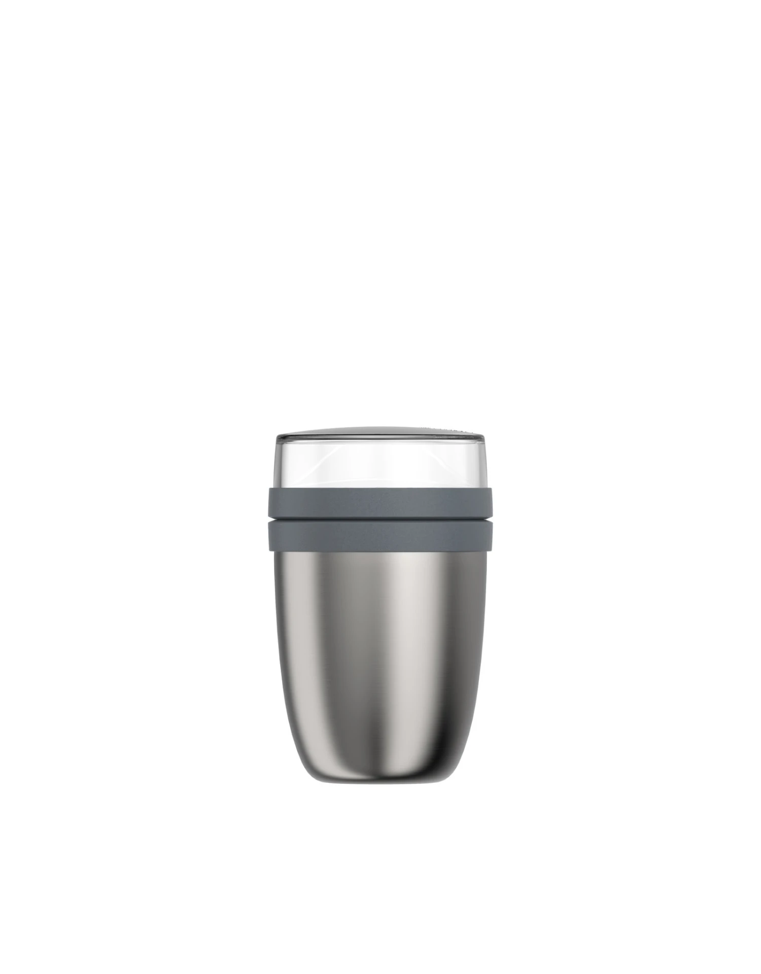 Altijd tijd tekort in de ochtend? Herkenbaar. Neem voor onderweg de isoleer lunchpot Ellipse in RVS mee met frisse yoghurt en granola (handig, want die blijft lekker knapperig in de deksel!). In de dubbelwandige roestvrij stalen pot blijft je yoghurt lekker koel… zelfs tot de lunch! In de trein of op je werk alleen nog even mixen en… klaar. Avonddienst, school of sportles zonder magnetron op locatie? Geen probleem: warm thuis een soepje op, giet ‘m in de lunchpot, croutons in de deksel… et voilá, zelfs na een paar uur nog een lekker warme maaltijd! Deze yoghurtbeker houdt je eten tot 10 uur warm en tot 16 uur koud.