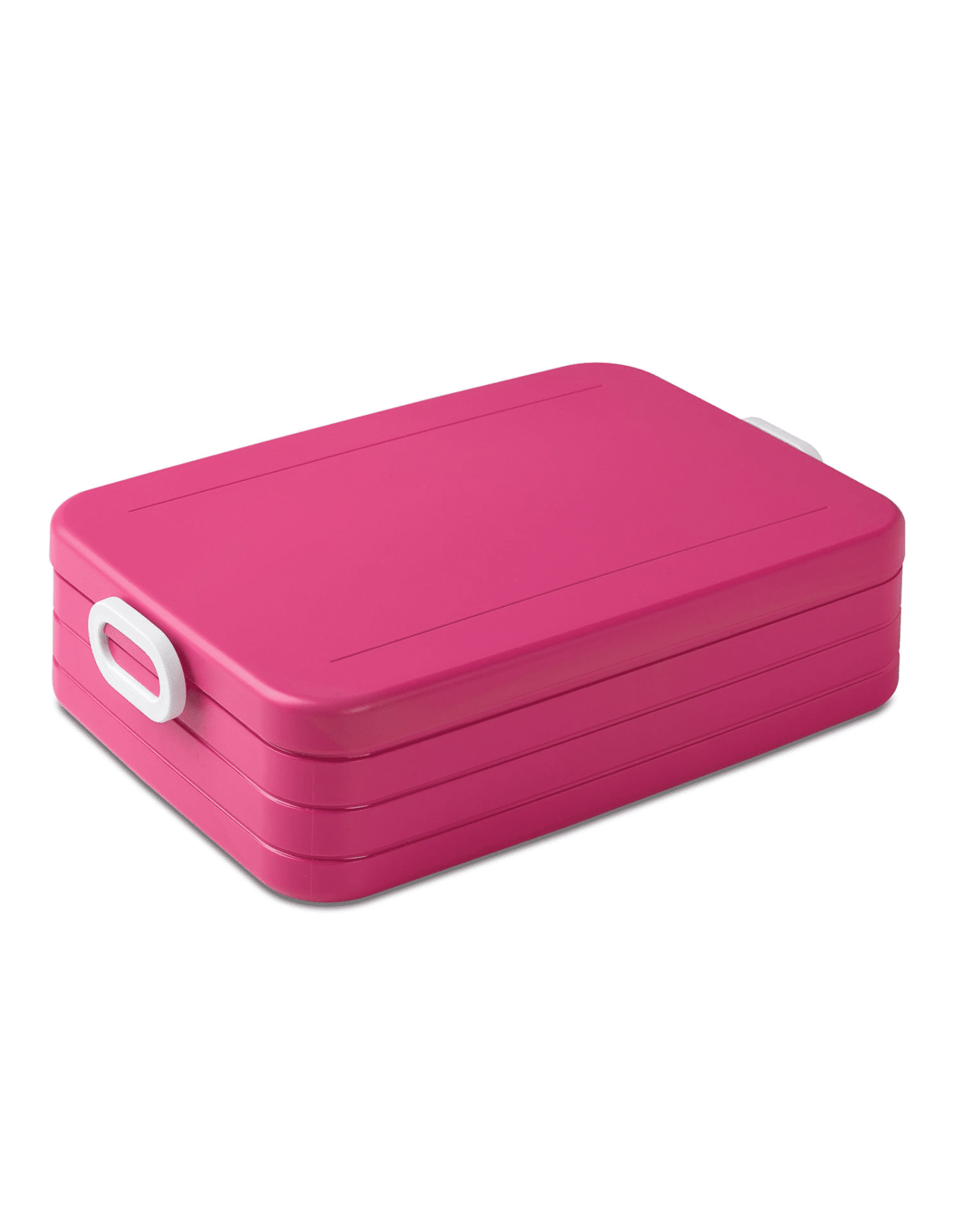 Lunchbox Take a Break large in de kleur pink. Deze grote roze broodtrommel van Mepal is geschikt voor maximaal 8 boterhammen. Hij is voorzien van een afdichtring die de inhoud altijd lekker vers houdt en een divider, waarmee etenswaren eenvoudig van elkaar kunnen worden gescheiden. Neem vanaf nu dus uw eigen lunch mee in deze broodtrommel. Dat is niet alleen goedkoop, maar ook lekker en gezond!
