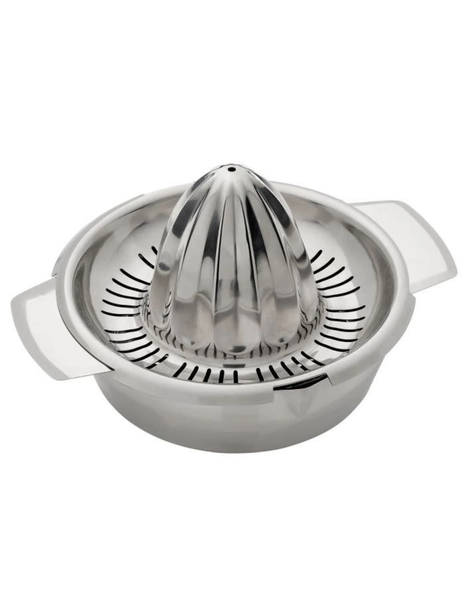 Met de klassieke citruspers met tuit pers je gemakkelijk sinaasappels, citroenen, limoenen en dergelijke. De nauwkeurig uitgewerkte lamellen op de perskegel zorgen voor uitstekende persresultaten. De zeef voorkomt dat te grove stukken en zaden in het sap komen.