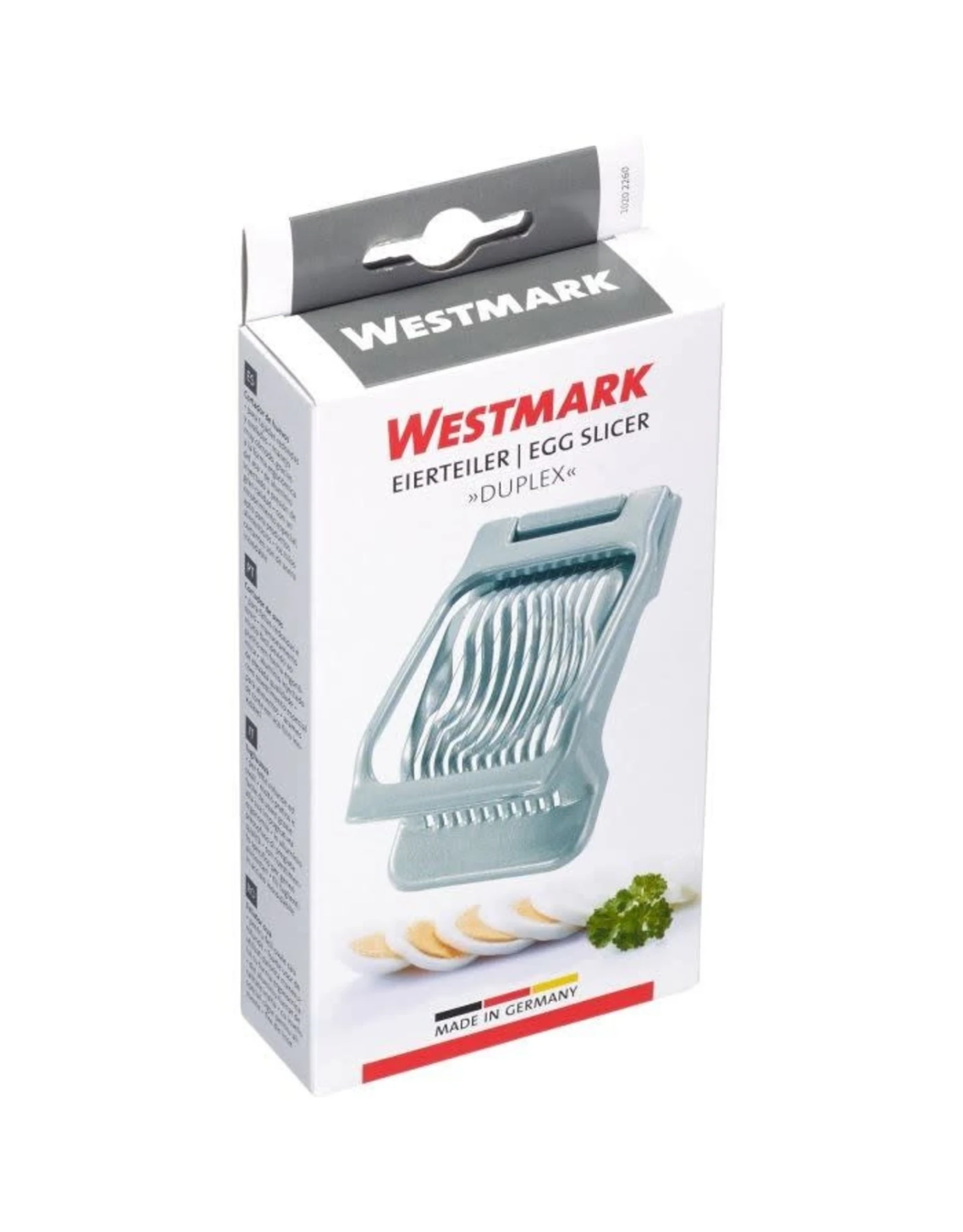 Wil je koude schotels of salades decoreren met mooi gesneden eierplakken – of gewoon op je brood? Met de stabiele eierverdeler Duplex doe je dit in een handomdraai. De individueel gespannen roestvrijstalen draden snijden het hardgekookte ei snel en netjes in ronde of ovale plakjes zonder de dooier te breken. De handgreep, die naar boven is gebogen, zorgt voor een eenvoudige bediening.