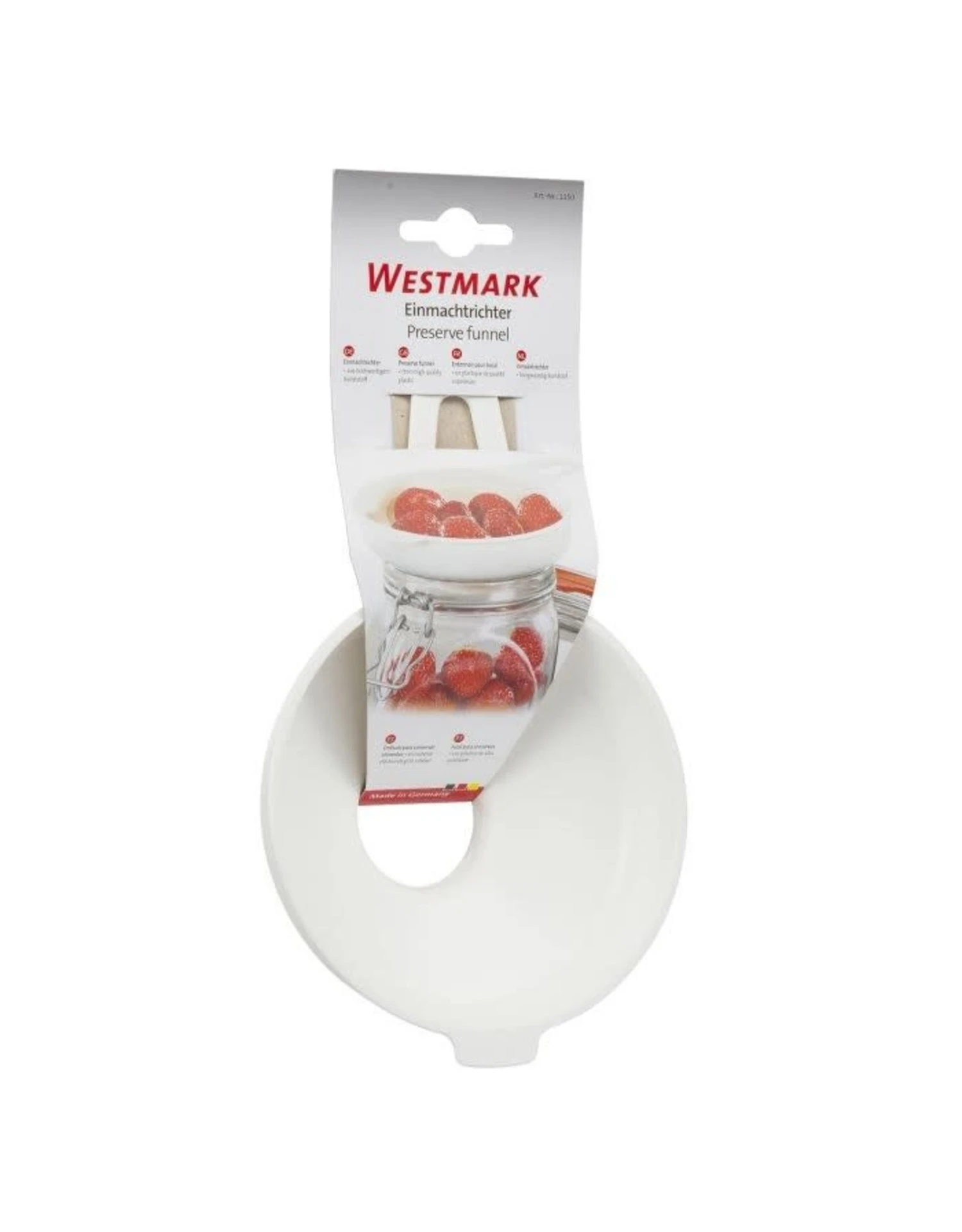 Met behulp van de inbliktrechter kunt u inmaak-/voorraadpotten, flessen of blikken met openingen van minimaal 4,2 cm diameter snel en netjes vullen met vloeibare, taaie en vaste, kleine levensmiddelen – zoals jam, suiker, rijst , koffie enz.