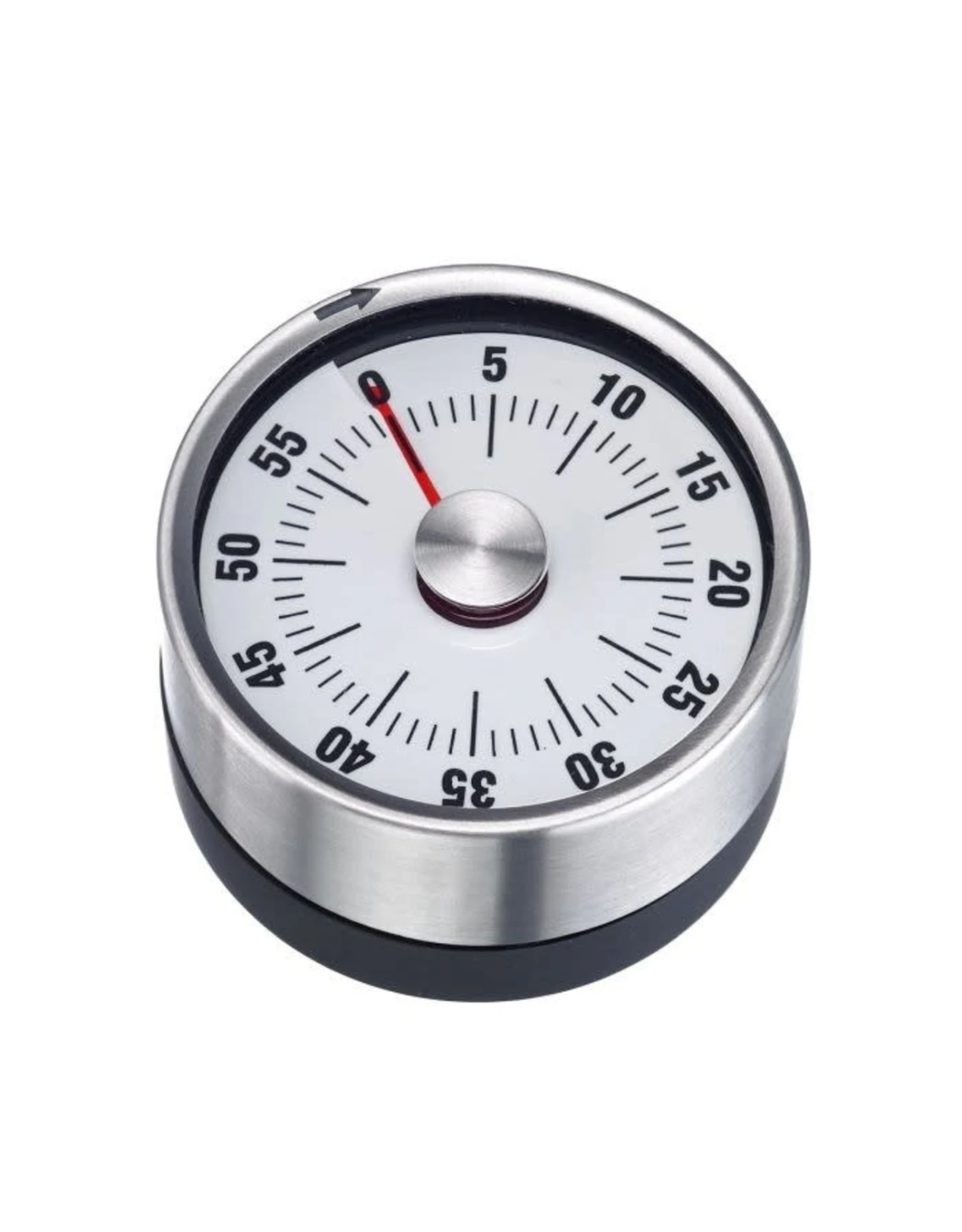 De praktische timer is ideaal voor het bewaken van de kooktijd van ontbijteieren, braadstukken en dergelijke en kan dankzij de magneet aan de achterkant op alle magnetische oppervlakken worden bevestigd, zoals de koelkast of de afzuigkap – de rode kleur op de draaiknop geeft u de resterende tijd altijd in het zicht. Om de timer te gebruiken, moet je eerst de timer volledig openen tot 60 minuten zodat de belfunctie wordt geactiveerd. Stel vervolgens de gewenste tijd in (1-60 minuten). Als de tijd is verstreken, hoort u een luid rinkelend geluid.