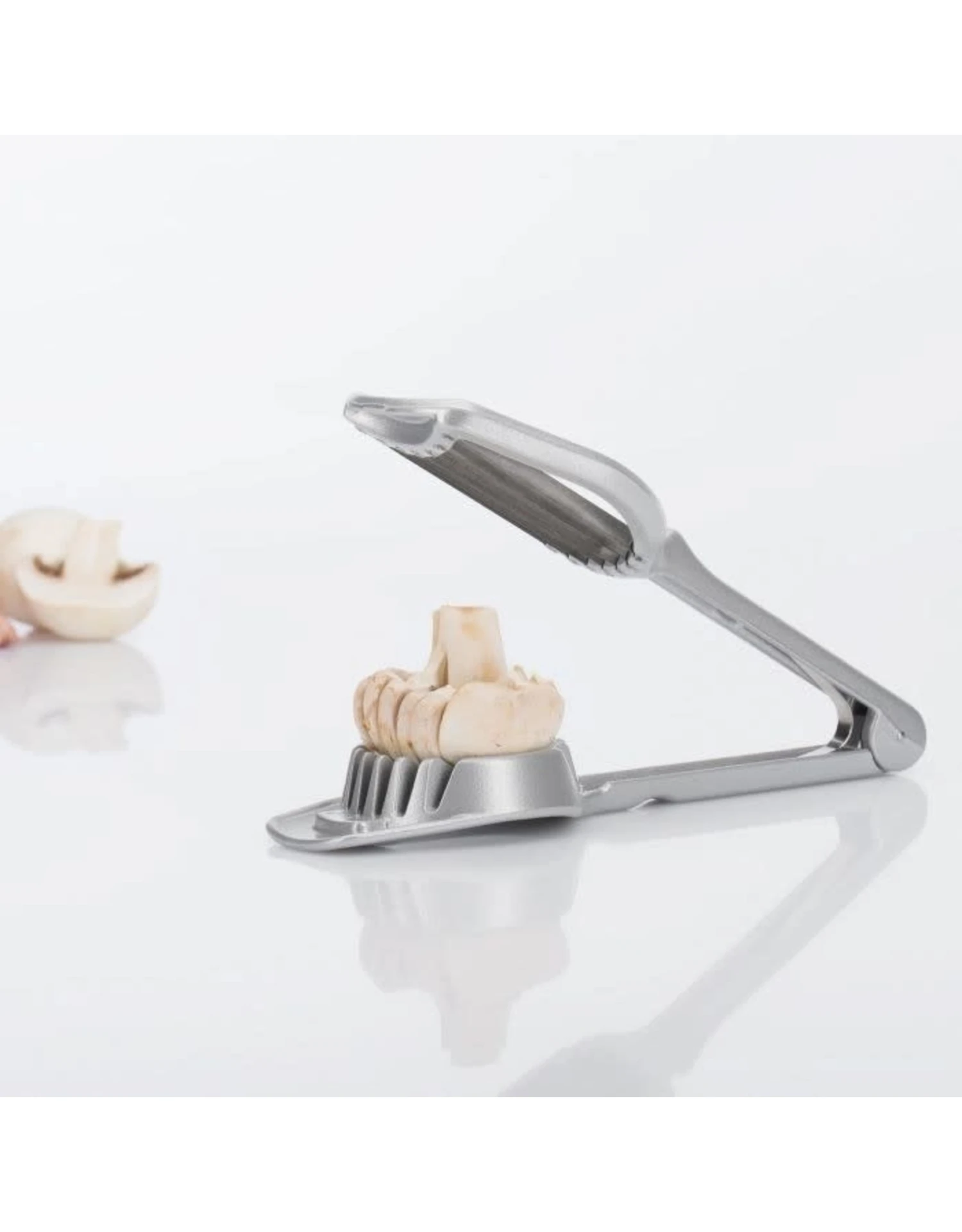 Versier je gerechten, buffetten en desserts met mooi gesneden champignons, aardbeien of kiwi’s. De stabiele multifunctionele snijder »Champion« helpt u hierbij. Met zijn zeven zeer scherpe en roestvrije roestvrijstalen messen snijdt de praktische keukenhulp zacht en hard voedsel tot een diameter van 6 cm probleemloos in gelijkmatige plakjes. Dankzij zijn compacte afmetingen is hij zeer gebruiksvriendelijk en gemakkelijk op te bergen.