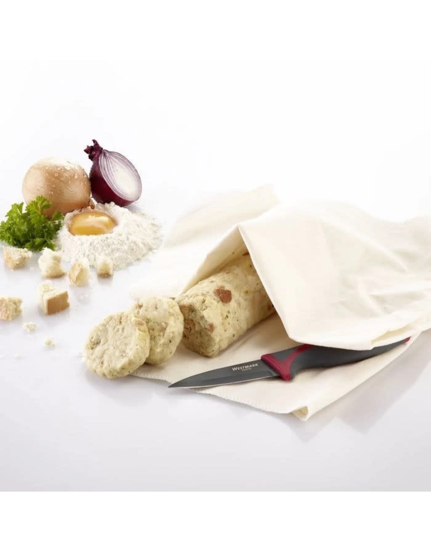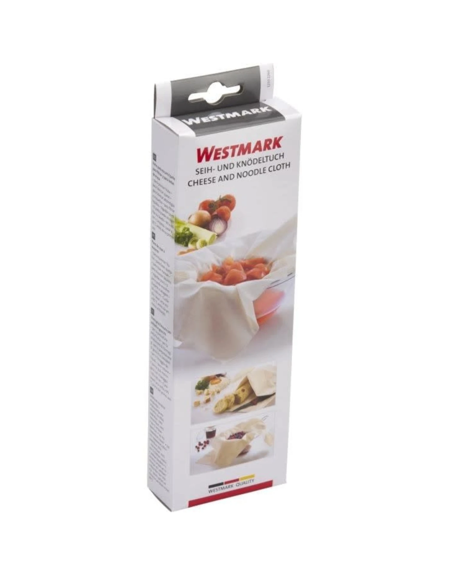 De praktische kaasdoek, zeefdoek en knoedeldoek van Westmark zijn ideaal voor het persen van fruit, het maken van knoedels en kaas en voor het zeven van sauzen of soepen. Het bestaat uit 100% katoen en is daardoor makkelijk wasbaar. Het pure, fijn geweven katoen is makkelijk in gebruik en is bijzonder geschikt voor fijne passe-partout. Zelfs bij een hoge luchtvochtigheid wordt het doek gekenmerkt door zijn hoge scheurvastheid.