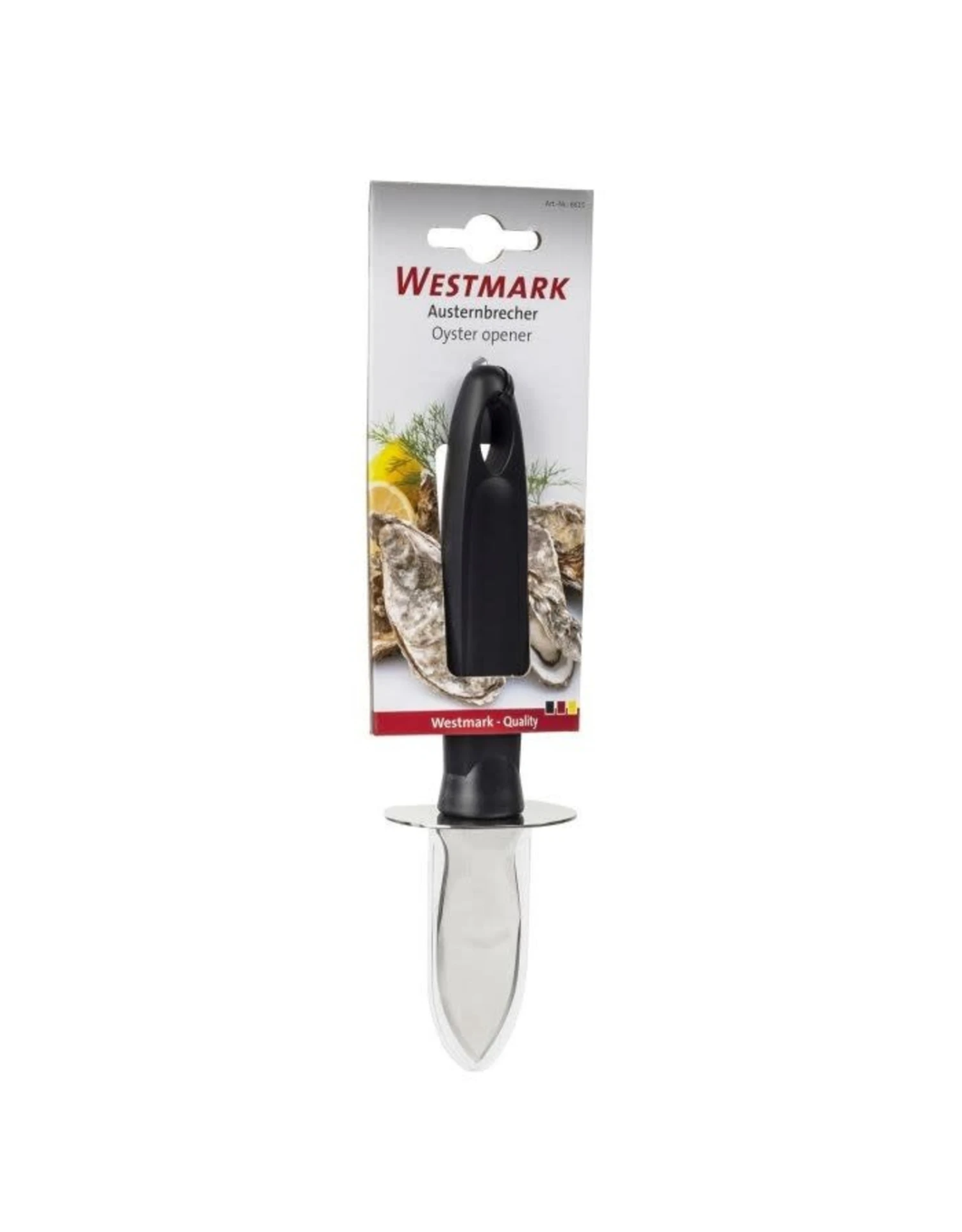 De hoogwaardige oesterbreker met een korte, brede mes (lemmetlengte: 7 cm) is perfect voor het openwrikken van oesters of het openen van andere mosselen. Moeiteloos openen van oesters wordt gegarandeerd door het bijzonder scherpe, gesmede, tweesnijdende roestvrijstalen mes met een smalle punt. De allround vinger- en duimbescherming biedt een hoge mate van veiligheid tijdens het hanteren. De ergonomisch gevormde, slipvaste handgreep van hoogwaardig kunststof met praktisch ophangoog zorgt voor een stevige grip.