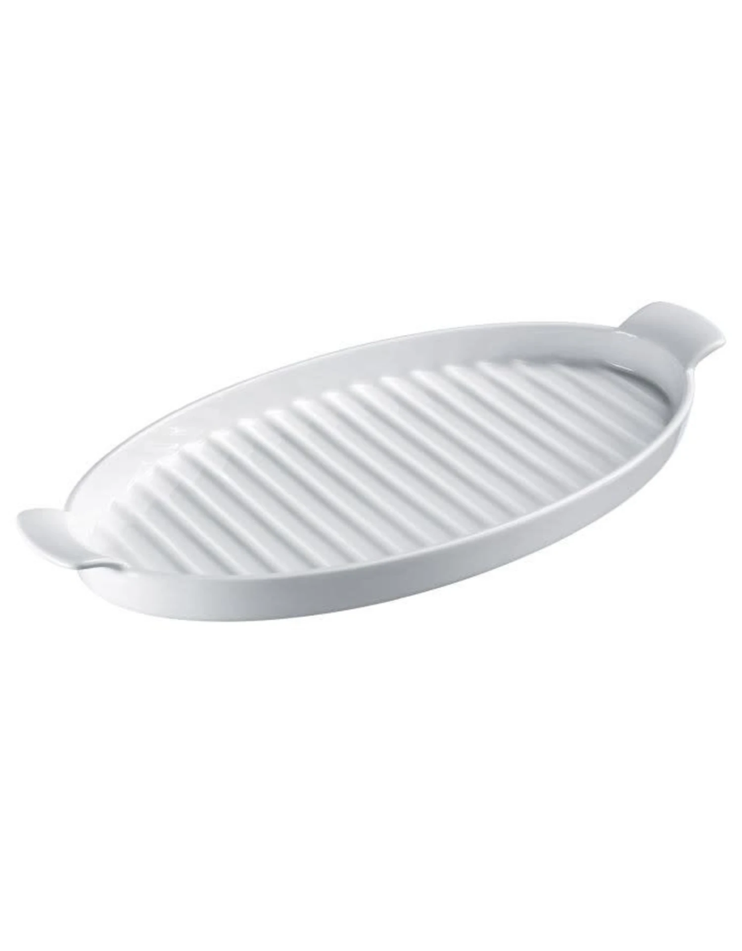 Dit praktische bord is geschikt voor het serveren en schikken van asperges, groenten en dergelijke, maar ook als grillschotel voor vlees in de oven (hittebestendig tot 180 graden). Door de praktische groeven aan de onderkant van het bord kunnen overtollige vloeistoffen weglopen, zodat nog knapperige groenten niet klef worden als ze in de jus of marinade liggen. Het eenvoudige, stijlvolle ontwerp maakt de serveerschaal een universele metgezel voor vele soorten serviesgoed. Na gebruik kan de helper eenvoudig in de vaatwasser worden gereinigd en ruimtebesparend worden opgeborgen.