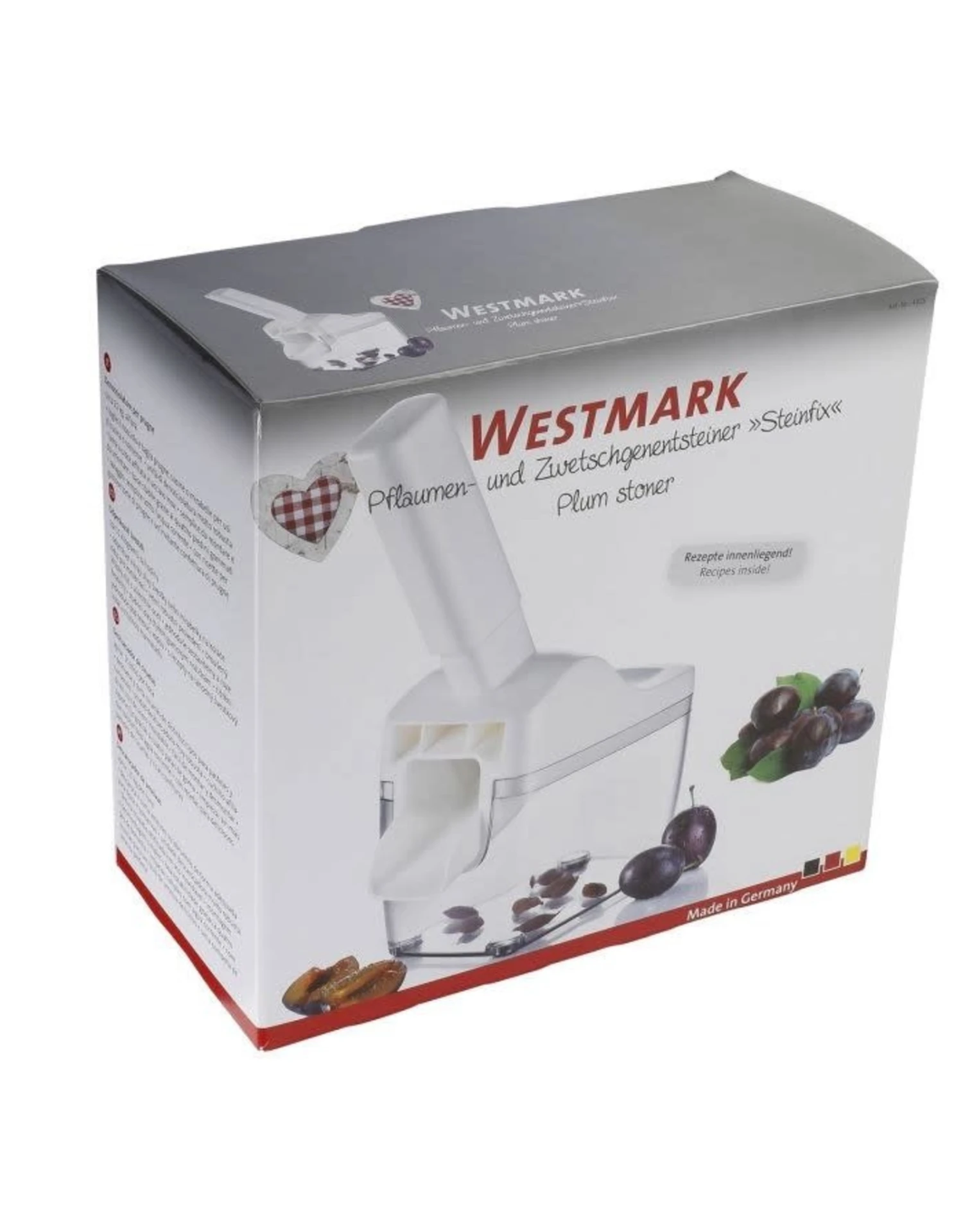 Met de pruimen- en pruimenontsteker verwijdert u snel de steen van verse, geconserveerde of nog bevroren pruimen of pruimen tot een diameter van 4 cm. De cassette vangt alle stenen netjes op. Bijzonder praktisch: het scherpe kruismes verwijdert de steen en snijdt het fruit meteen voor taarten en bakvormen.