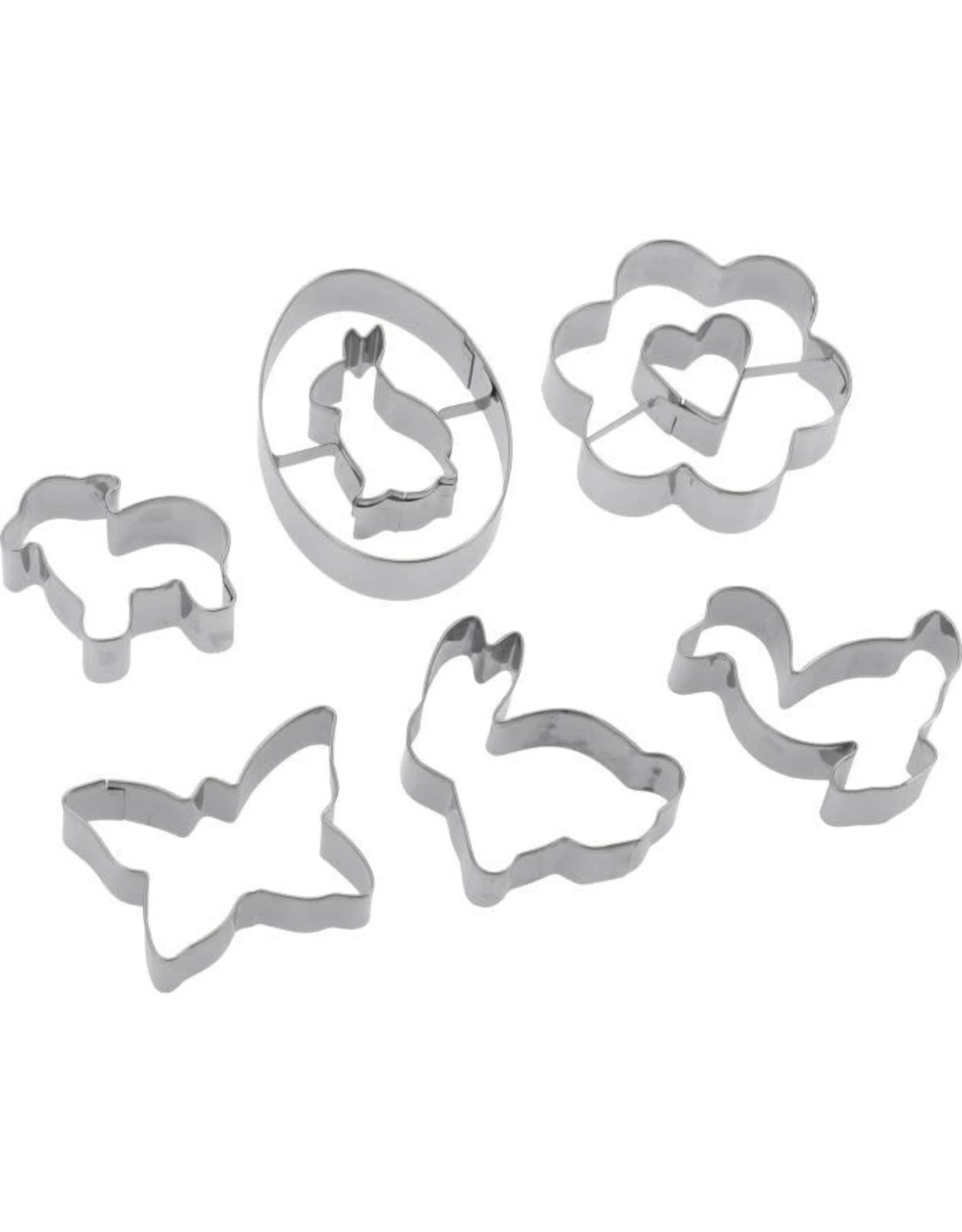 Wie houdt er niet van haar Of het nu voor Kerstmis, Pasen of gewoon voor de koffie is. Koekjes passen altijd! Met onze koekjes uitsteker set “Pasen / Lente” van hoogwaardig RVS maak je zowel zoete als hartige koekjes. Door de zeer scherpe snijkant van de koekjes uitstekers knip je moeiteloos de verschillende motieven uit. De opgerolde bovenrand minimaliseert het risico op letsel. De set bevat de volgende koekjes uitstekers: konijn, schaap, kuiken, vlinder, hart.