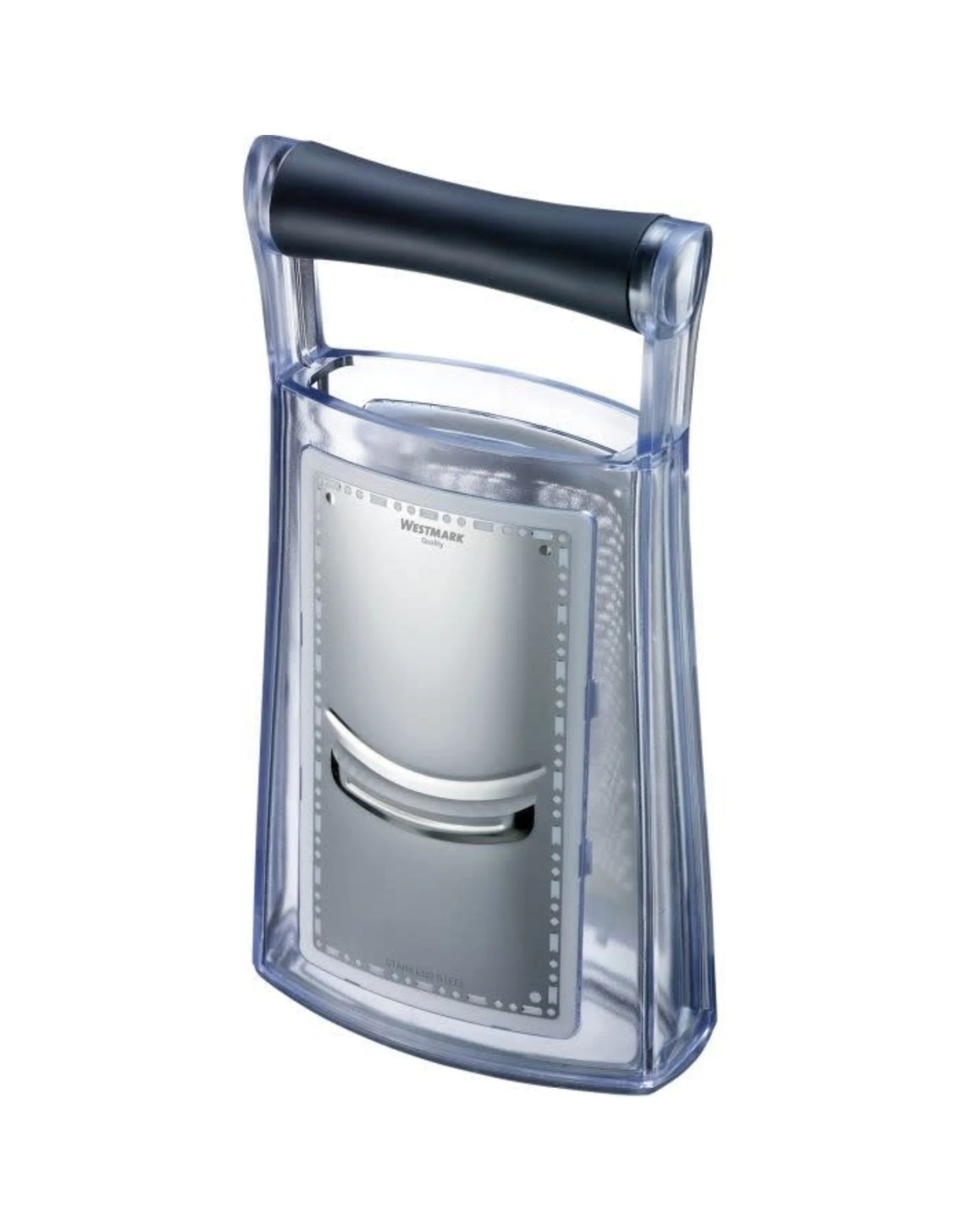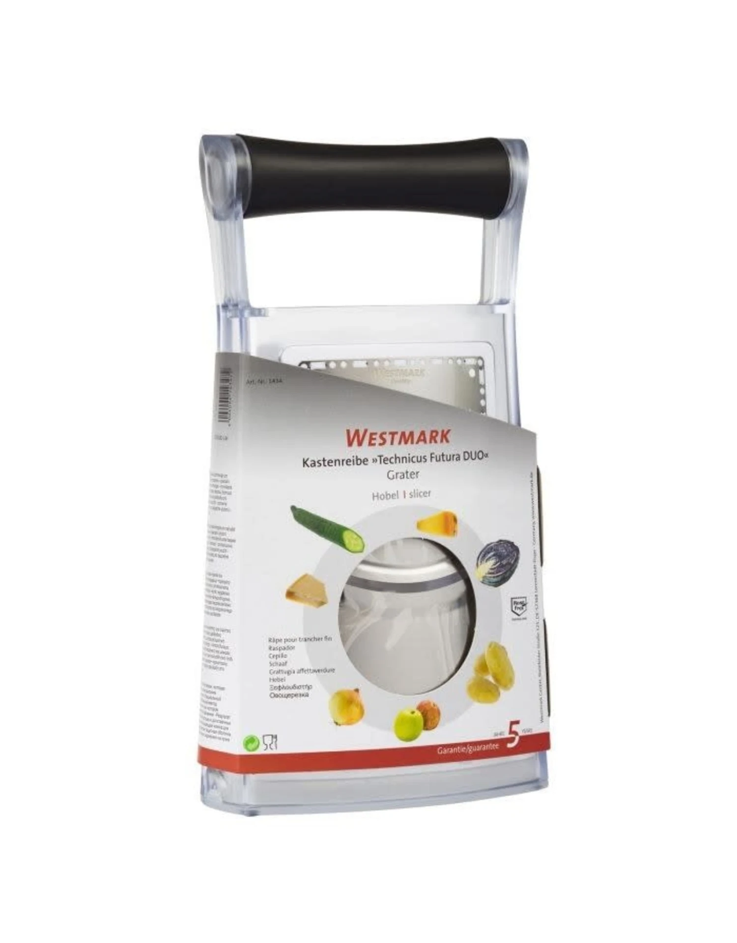 Met de hoogwaardige torenrasp rasp of snijd je fruit, groenten, noten, harde kaas of chocolade dankzij de twee raspoppervlakken grof. De speciaal geëtste en daardoor bijzonder scherpe en duurzame roestvrijstalen messen zorgen ervoor dat groenten en fruit netjes worden gesneden. Dit voorkomt pletten of pletten en het volle aroma kan zich ontwikkelen. De afneembare bodem zorgt ervoor dat het geraspte voedsel gemakkelijk en direct in de kom kan worden geplaatst. Het conische ontwerp en de rubberen coating aan de onderkant van de rasp, evenals de afgeronde handgreep van hoogwaardig kunststof, garanderen een eenvoudige en veilige bediening van de torenrasp.