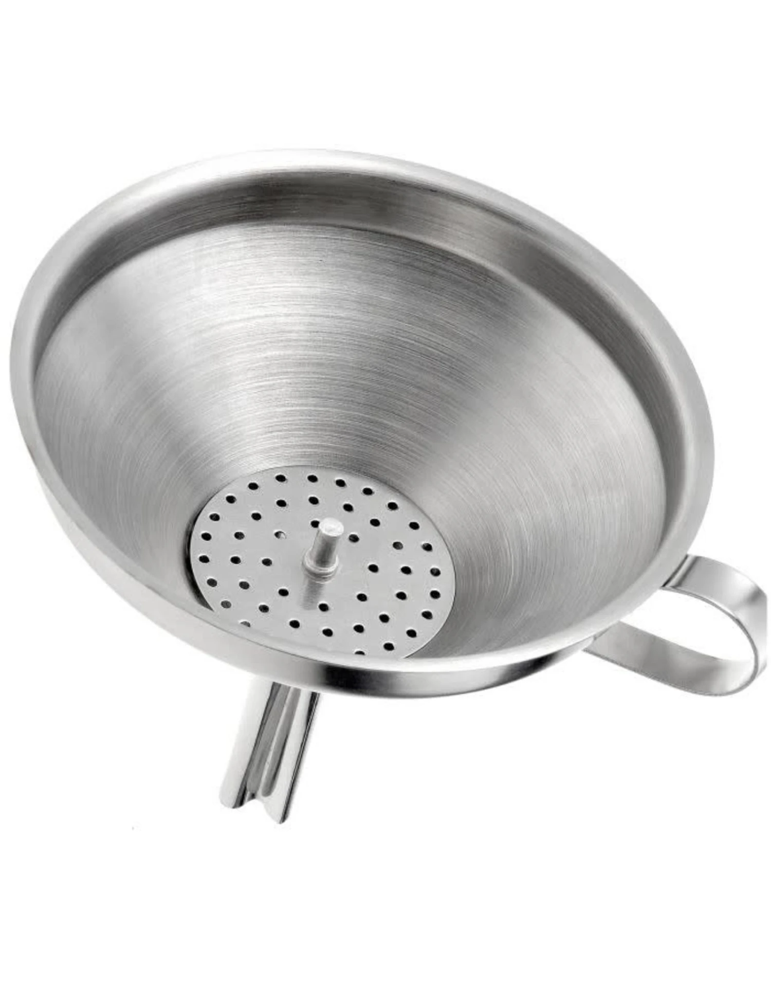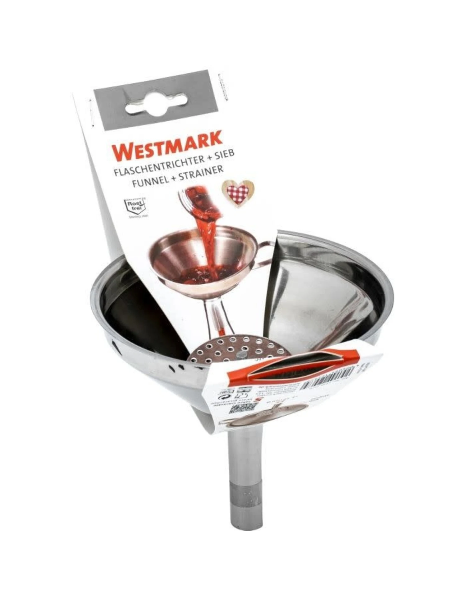 Met de flessentrechter met uitneembare zeef vul je snel en schoon flessen met openingen van minimaal 1,3 cm diameter. De geplaatste zeef filtert op betrouwbare wijze ongewenste stukjes fruit of zaden, zodat alleen het pure sap kan worden gevuld. Als je de zeef eruit haalt, is de trechter ook bij uitstek geschikt om suiker of zout over te hevelen naar geschikte shakers. Met andere woorden: de trechter kan ook uitstekend worden gebruikt in de gastronomie.